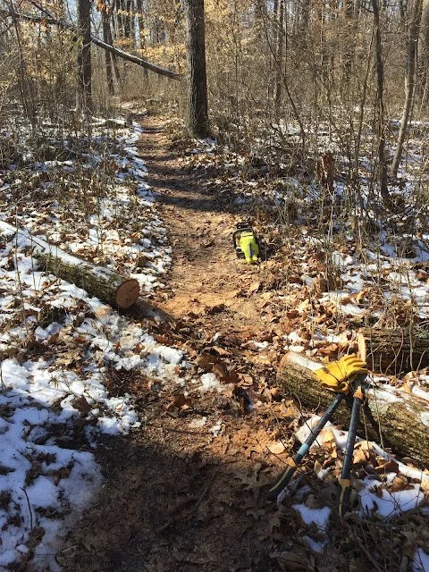 One thing we'd rather hikers not encounter is the ponding in some existing trails in late winter. Winter, when leaves have fallen and the woods is flooded with light, is the best time to search for better trail routes. In this case, we found higher ground running along an overgrown rock wall just a few yards to the left.